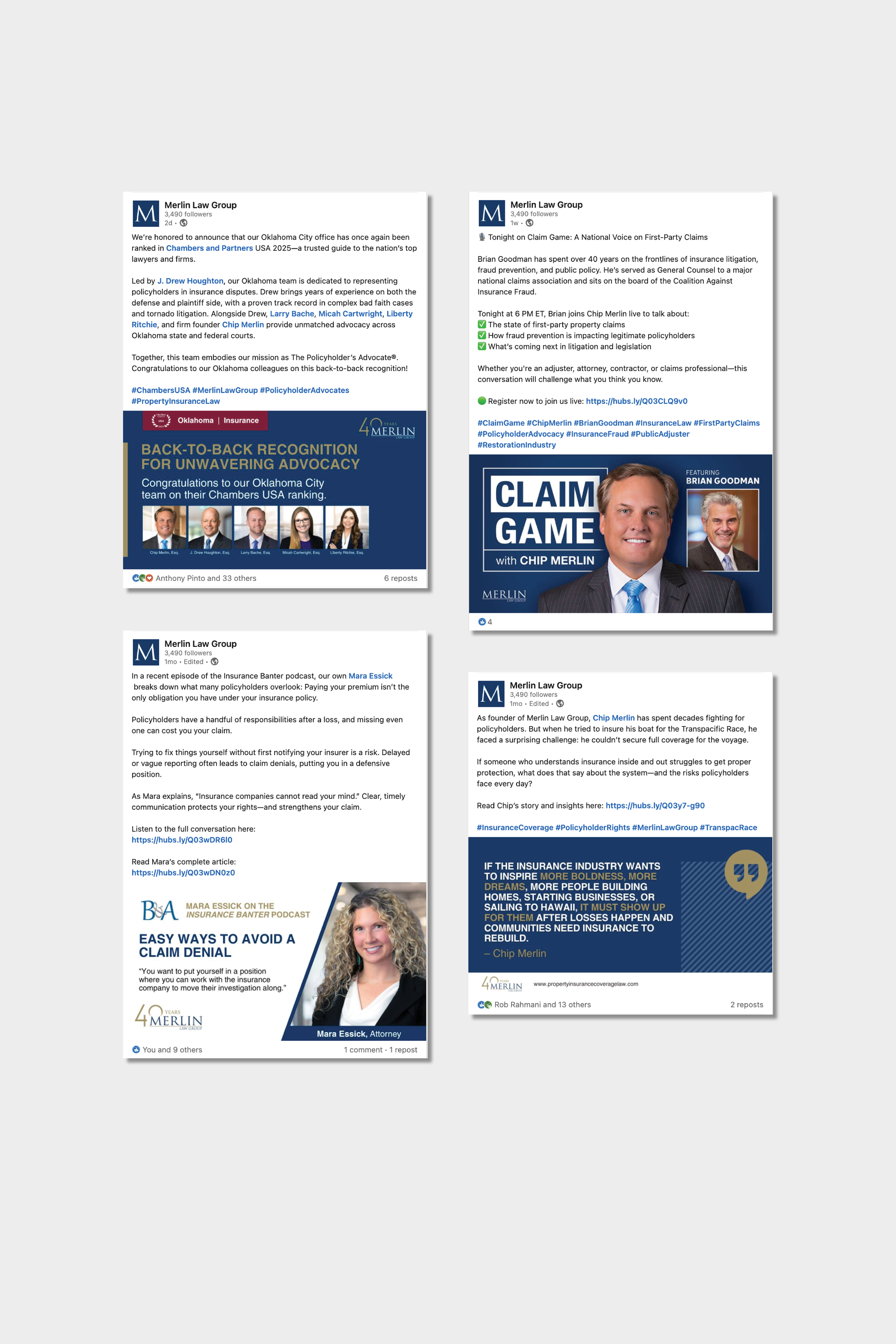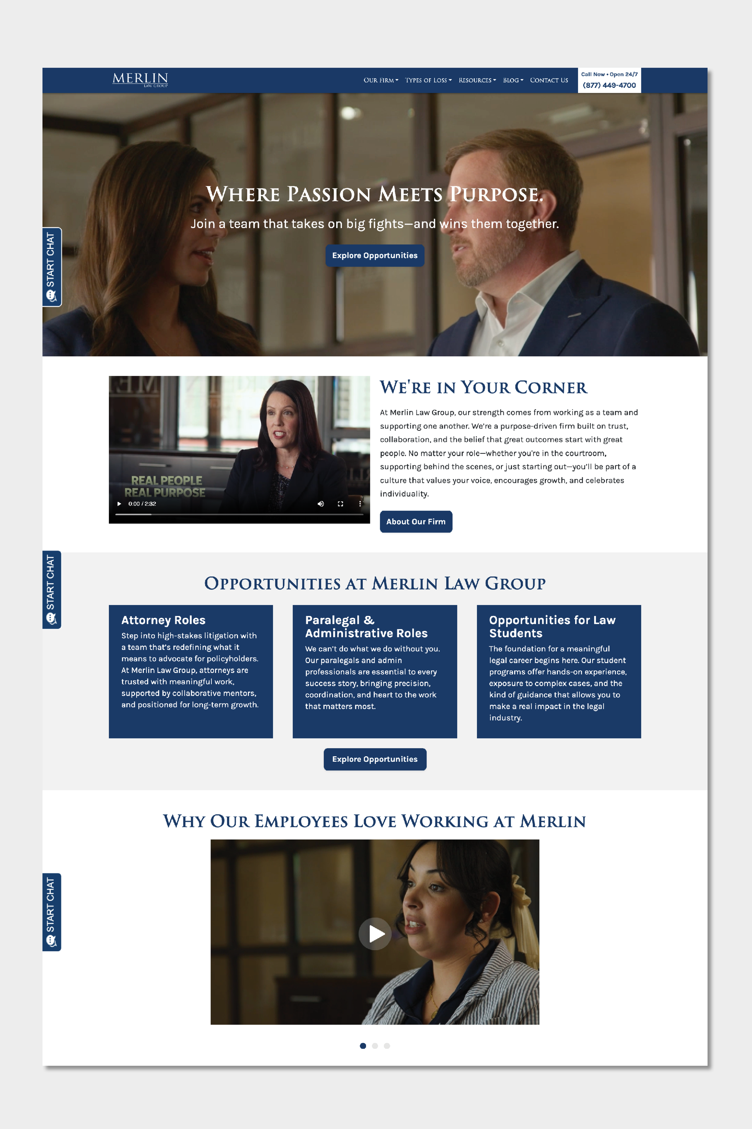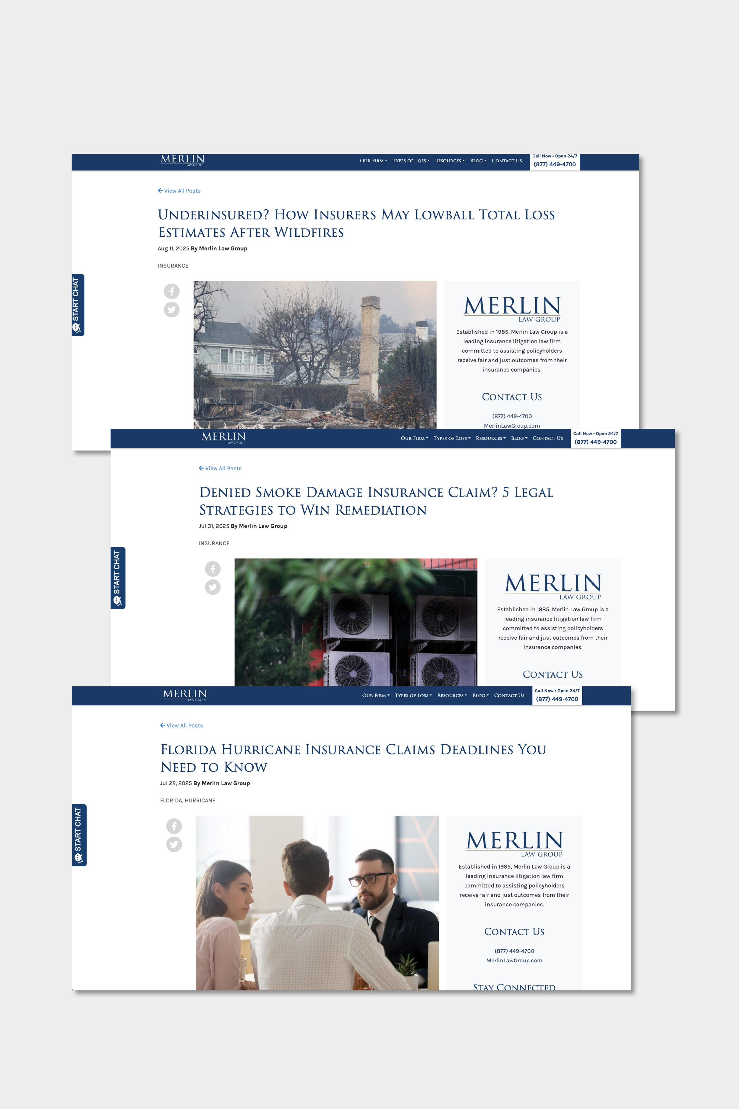 At Merlin Law Group, I reimagined the firm’s marketing foundation from brand voice and visual identity to content strategy and campaign design. I introduced brand standards, built a content ecosystem that showcased our legal expertise with clarity and warmth, and aligned our storytelling with business development goals. The creative work didn’t just look good, it performed. We saw significant increases in organic traffic, attorney engagement and inbound activity across multiple campaigns, including high-stakes wildfire response efforts in California.
